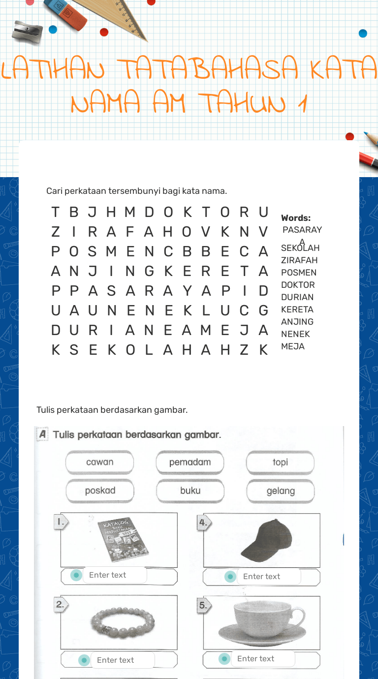 Cari Gambar Tersembunyi Tahun 1 : Cari Perkataan Tersembunyi Sains